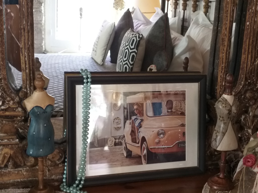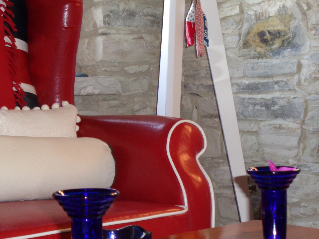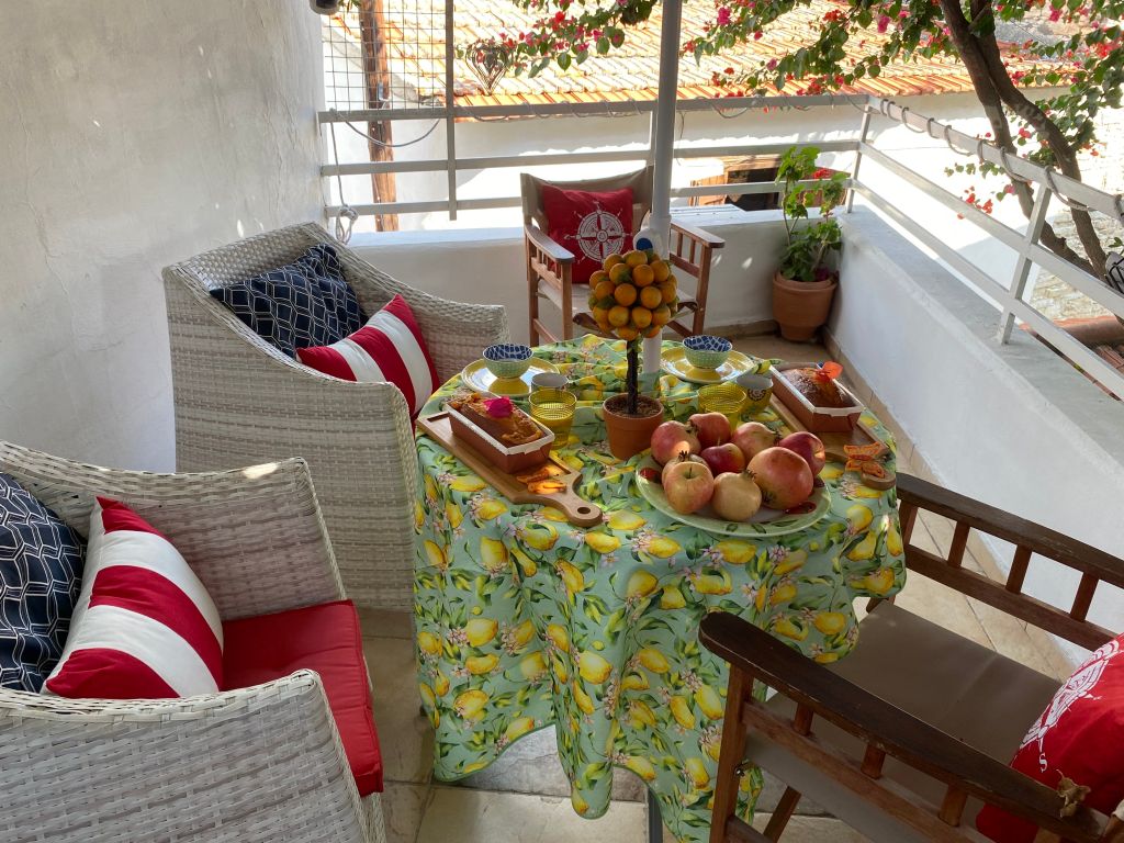 It offers a king size bed with anatomic comfortable matress,Guy Laroche bedlinen,a private balcony with sitting facilities under the bougainvillea with a beautiful view of the mountain ,a shower room with Korres toilletries,a fully equipped kitchen,a Nespresso coffee maker,tea and coffee facilities,an air conditioner,free wifi,a satelite tv and a cosy red leather sofa with designers cushions.