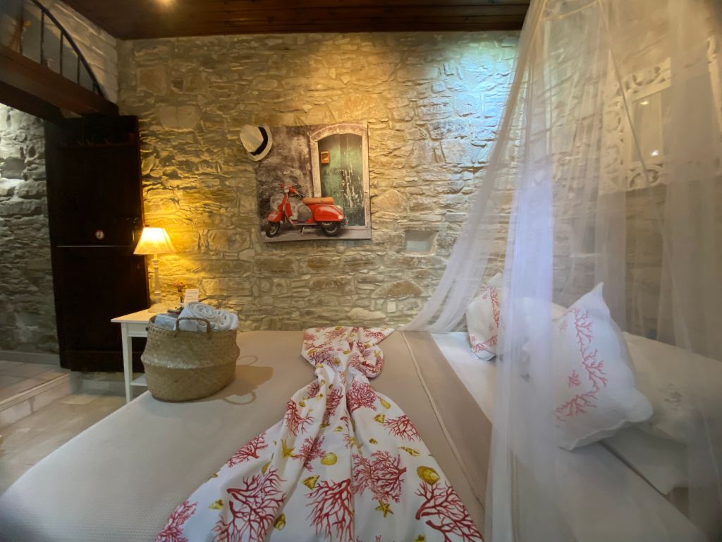 Our “Cave Stone” room is a sweet romantic room with marine style, travelling you to the caves of Santorini island. An Anatomic Japanese style king size bed is there to give you the best comfort you need, a shower room,a satelite flat tv, a refrigerator,a Nespresso coffee maker, tea and coffee facilities, Korres toiletries,air conditioner and free wifi are also included.